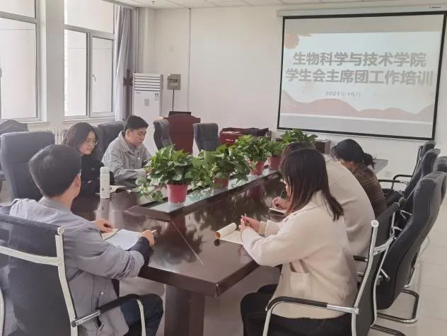 分别在特教楼B1006会议室、11J5501对新一届学生会工作人员进行了培训。辅导员阮斌老师主持会议,学院全体学生会工作人员参加会议。