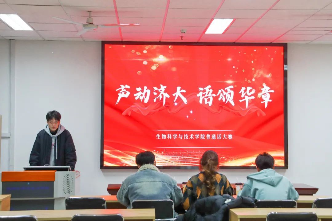 活动伊始,主持人为大家详细介绍了比赛流程和评分细则。接着选手们依次登台,围绕“声动济大,语颂华章”主题,进行了自选篇目朗诵。他们声情并茂,慷慨激昂,传达出强烈的爱国主义精神。