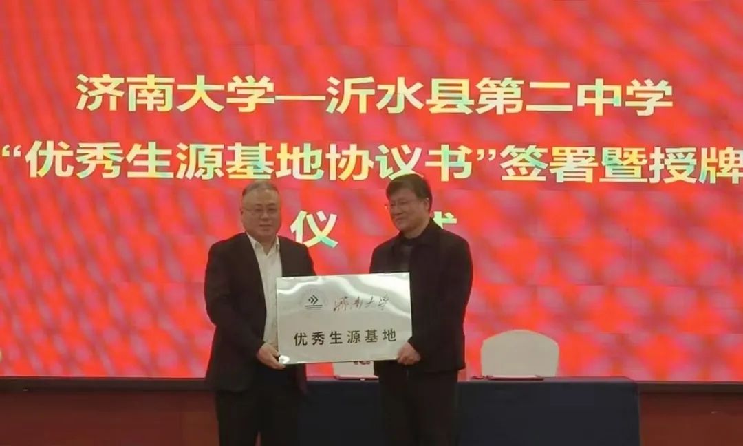 毕业生就业实习基地协议并揭牌,与沂水第二中学签署优秀生源基地协议并揭牌。