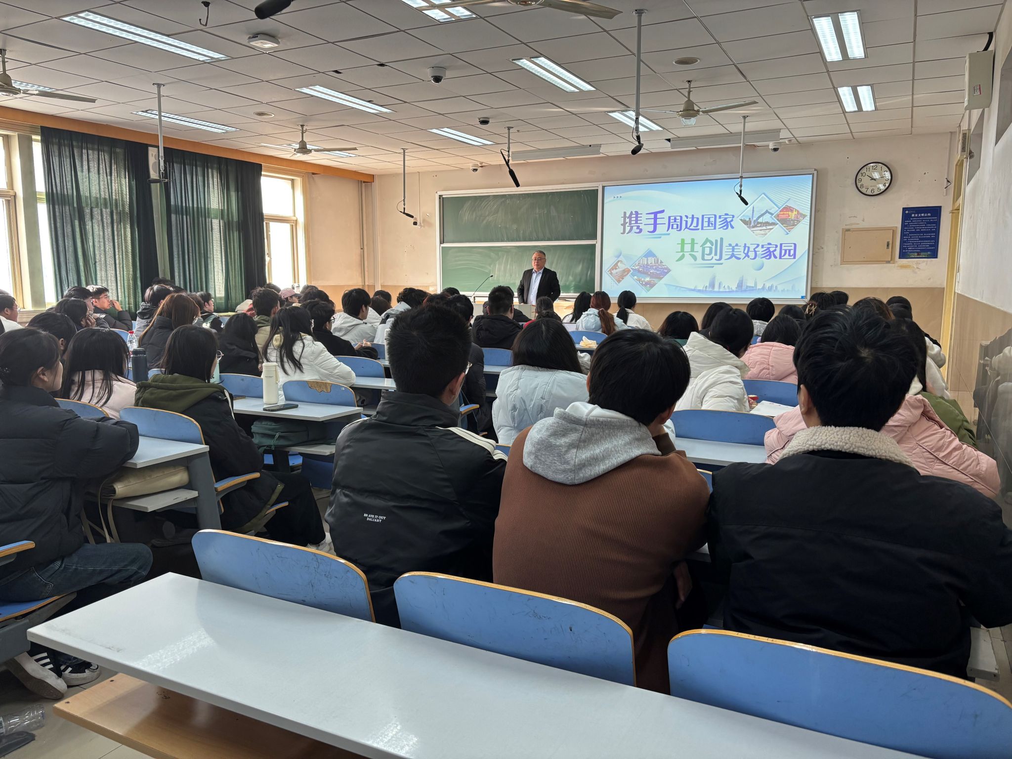 最后,黄校长强调,要不断开创周边外交工作新局面,青年学子应树立全球视野,增强国际责任感,以实际行动促进与周边国家的友好交流,为共创美好家园贡献青春力量。