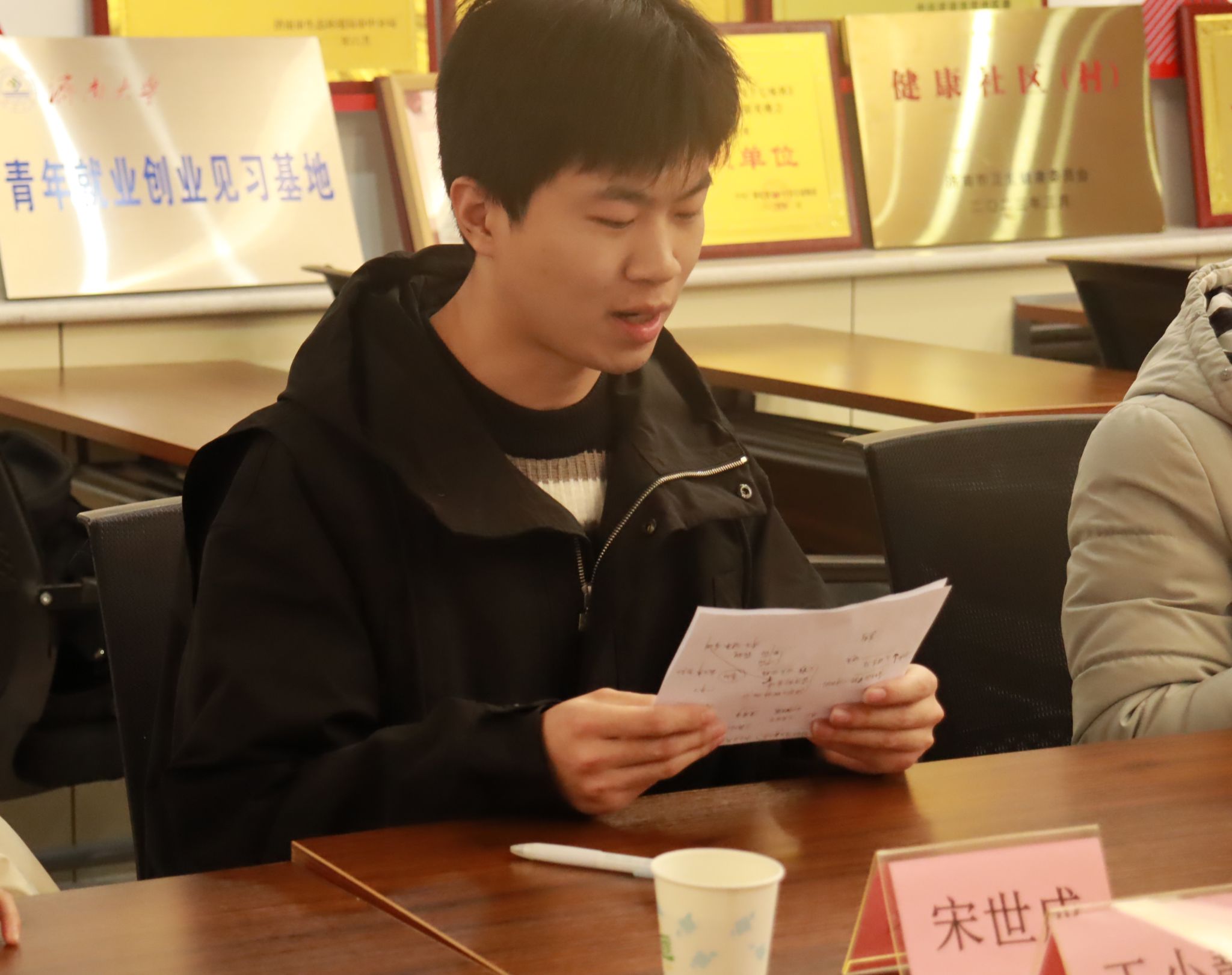 学院志愿者代表宋世成发言,他表示,参加志愿服务是将所学知识应用到实践中的最好途径,未来将认真履行志愿服务职责,为社区建设、祖国发展贡献青春力量。
