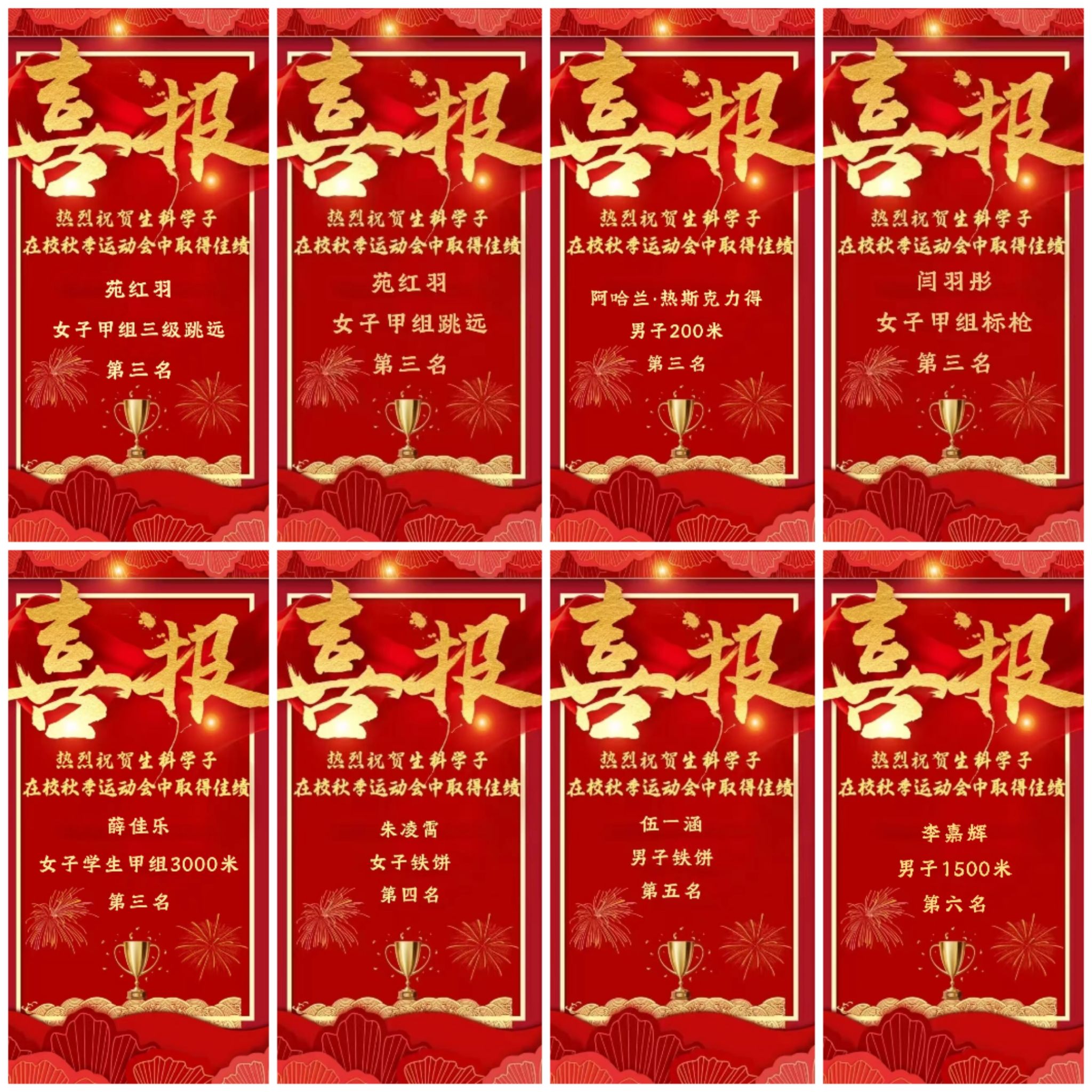 的运动员们在赛场上展现出了顽强拼搏、超越自我的精神,让我们带着运动场上这份坚韧与勇气,在未来的道路上继续勇往直前,用实际行动书写更加辉煌的青春篇章!