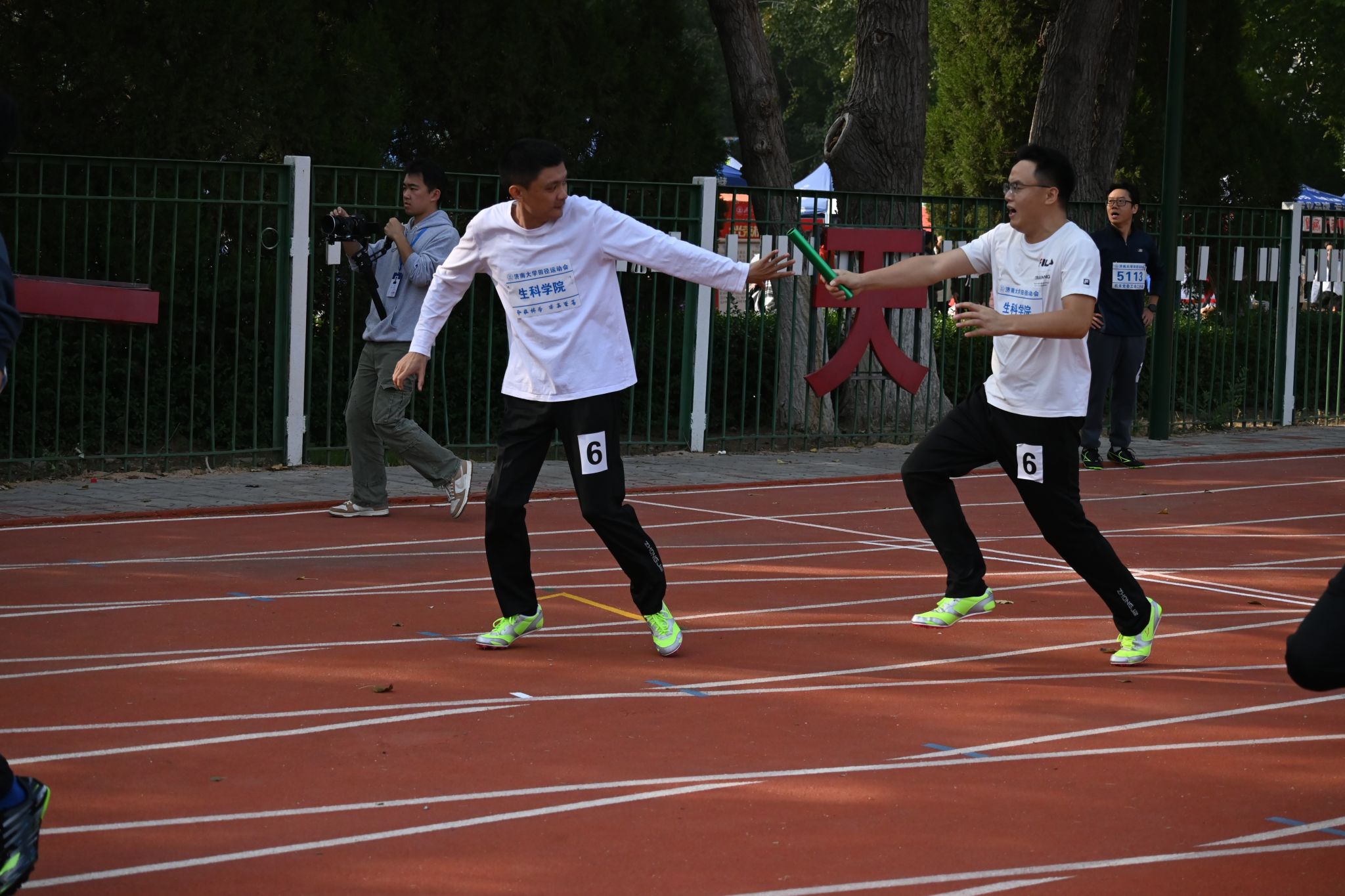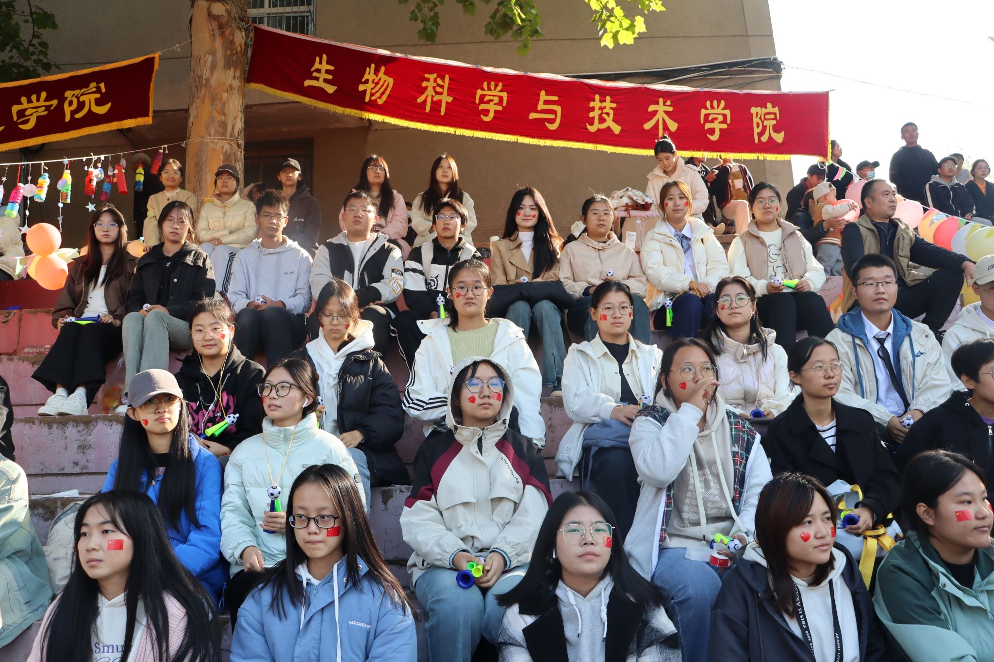 师生同心协力、奋勇拼搏,取得了优异的成绩。在他们身后,学院观众席同样气氛热烈、震撼人心,时时处处洋溢着欢笑与喝彩;学生志愿者们的身影遍布运动场的每一个角落,成为了赛场上的一道亮丽风景线。